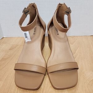NWT Torrid 11WW Square Toe Ankle Strap Demi Wedge Cognac Tan Sandals 11 Wide