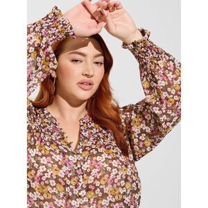 NWT Torrid 1X Floral Crinkle Chiffon Smocked Blouson Sleeve Blouse Size 14-16