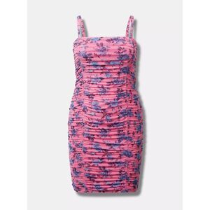 NWT Torrid 2X Rose Pink & Blue Floral Print Mini Mesh Shirred Bodycon Dress