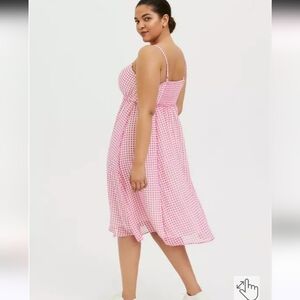 NWT Torrid 2x Hot Pink Gingham Chiffon Button Midi Dress