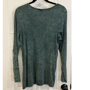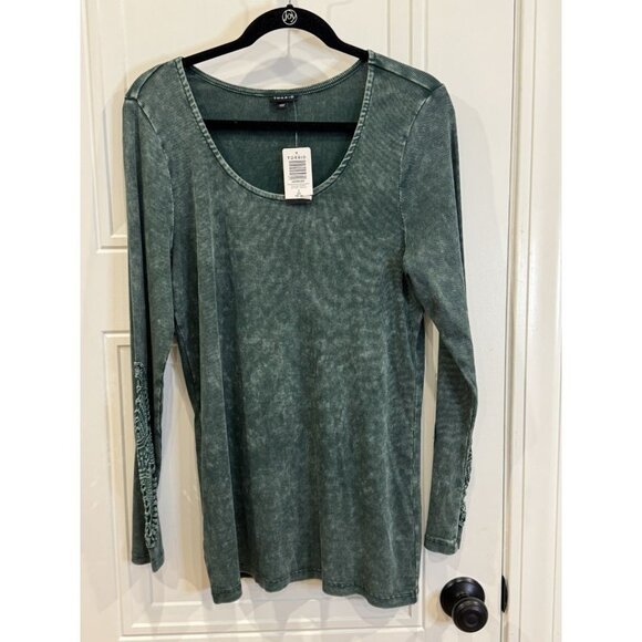 NWT Torrid 2xl Green Long-Sleeve T-Shirt with Crochet Detail Boho Ribbed Knit