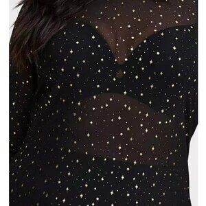 NWT Torrid 3 Celestial Gold Foil Black Mesh Mock Neck Long Sleeve Top 3X 22 24