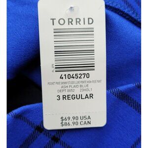 NWT Torrid 3 Plaid Blue Studio Pixie Luxe Ponte Skinny Pant 3X 22 24