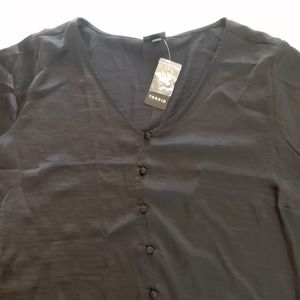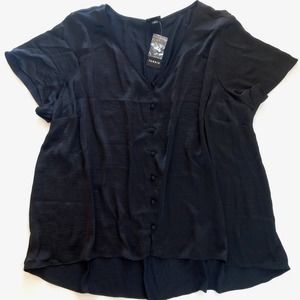 NWT Torrid 3X Chablis Women's Black V Neck Charm Button Up Shirttail Hem