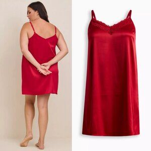 NWT Torrid 4 Dream Satin Lace Trim Sleep Cami Gown (2) Black & Red 4X 26