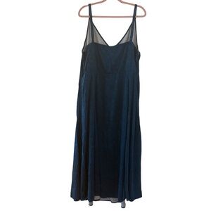 Beautiful Torrid plus-size trapeze dress in a rich legion blue shade with subtle floral jacquard detail. Lightweight stretch challis fabric with adjustable straps and a flowing tea-length cut, perfect for layering or wearing solo. A versatile piece for casual outings or dressed-up occasions.