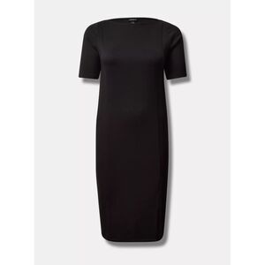 NWT Torrid 4X Deep Black Midi Studio Cupro Elbow Sleeve Bodycon Dress Size 26
