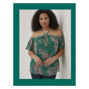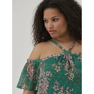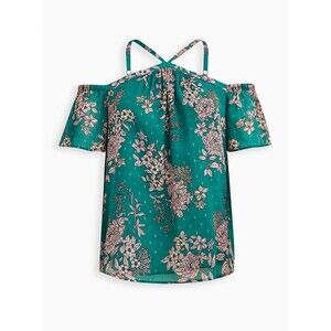 NWT Torrid 4X Floral Green Crinkle Chiffon Cold Shoulder Halter Top Size 26
