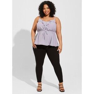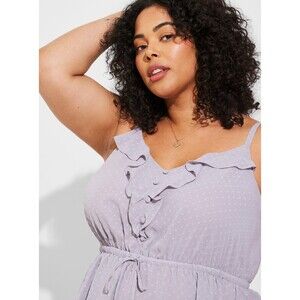 NWT Torrid 4X Lilac Gray Chiffon Clip Dot Ruffle Tie Waist Tank Top Size 26