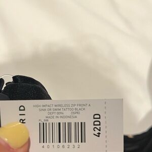 NWT Torrid Active High Impact Wireless Zip Front Tattoo Print Sports Bra 42DD