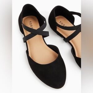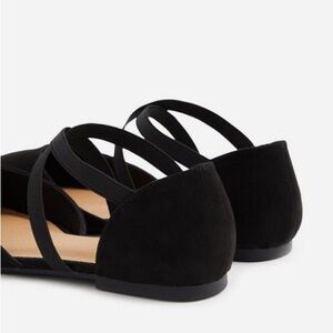 NWT Torrid Black Faux Suede Elastic Crisscross Strap Flat Shoes Women’s size 6