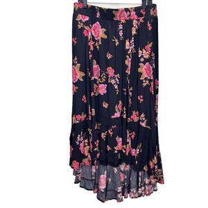 NWT Torrid Black Pink Floral Gauze Hi Low Pull On Maxi Skirt Size 1X Pockets