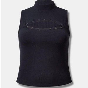 NWT Torrid Black Rib Mock Neck Cut Out Snap Crop Tank Size 4X