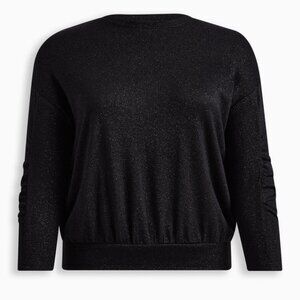 NWT Torrid Black Sparkle Knit Drop Shoulder Shirred Sleeve Top - Size 3, 3X, 22-24. Crew neck. Long shirred sleeves. Sparkly metallic detail.