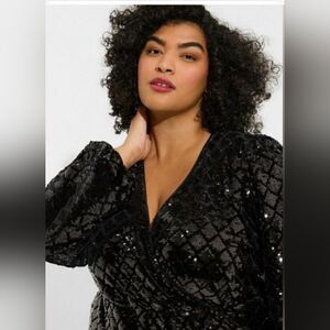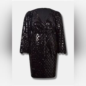 NWT Torrid Black Mini Velour Sequin Surplice Dress size 18