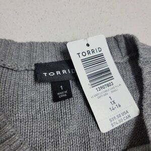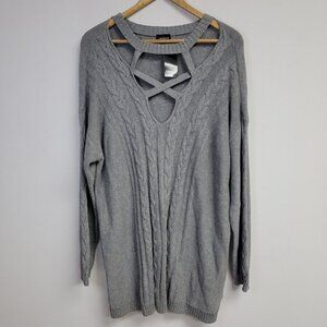 NWT Torrid Cable Knit Pullover Cage Neck Tunic Sweater Size 1X Grey Cutouts Sexy