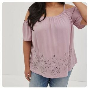NWT Torrid Challis Elderberry Short Sleeve Cold Shoulder Top Size 1X (14-16)
