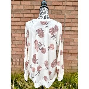 New with tags beautiful Torrid pullover top with pink peony floral pattern over a cream background, Torrid size 2, or US women's 2X, or US women's 18-20. Super soft and cozy brushed feel. Great for transitioning from winter to spring!