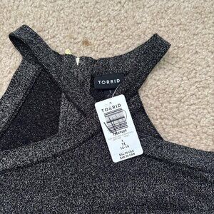 NWT Torrid Cross Neck Cold Shoulder Sweater Womens 1X Black Sparkly Stretchy