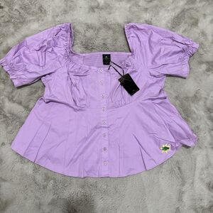 NWT Torrid Disney Tangled Rapunzel Peplum Top Purple Stretch Poplin Size 3X