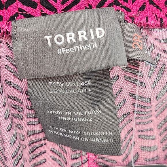 NWT Torrid Drawn Chevron Pink Peacock Pull-On Wide Leg Pant Women's 2X