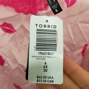 NWT Torrid Dream Satin Lace Trim Sleeveless Sleep Top Pink Size 6