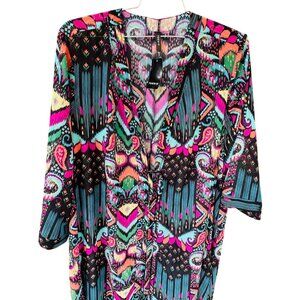 NWT Torrid Elbow Sleeves Multi Ikat Maxi Kimono Size 2X Swim Cover Up