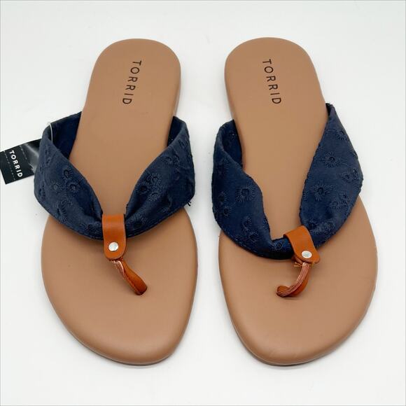 NWT Torrid Eyelet Flip Flop Sandals in Navy Blue Size 7WW
