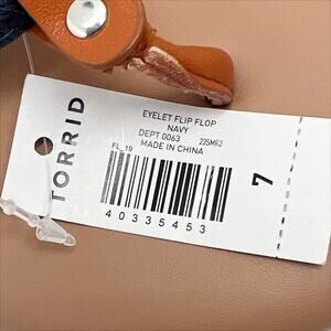 New with tgs. Torrid Eyelet Flip Flop Sandals in Navy Blue Size 7WW.