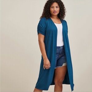 NWT Torrid Fit & Flare Ruched Sleeve Duster Cardigan in Teal Blue