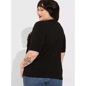 This is a NWT Torrid Fitted Crop Bat Cardigan Embroidered Black & Orange 4X 26 Plus.