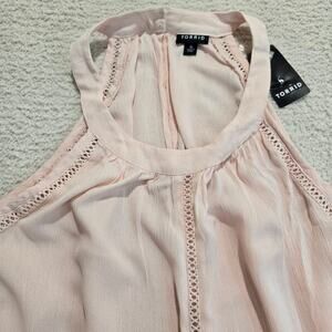 NWT Torrid Gauze Goddess Neck Tank Top Sz L High-low Peach Summer Gauzy