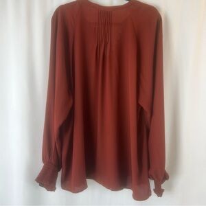 Elevate your wardrobe with this elegant rust blouse. Featuring a button-down front and delicate detailing, it's perfect for any occasion.