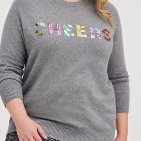 Name Brand: NWT Torrid Gray Cheers Sequin Raglan Sleeve Pullover Sweater Womens Size 4/26