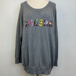 NWT Torrid Gray Cheers Sequin Raglan Sleeve Pullover Sweater Womens Size 4/26