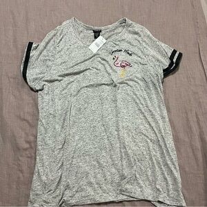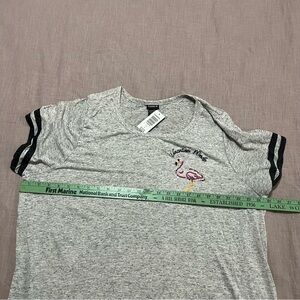 NWT Torrid Gray Tee Embroidery Pink Flamingo Sequin Design Vacation Plus Size 4