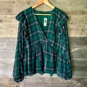 NWT Torrid Green Plaid Chiffon Ruffled Sleeve Cropped Top Flounce 3X, 22-24 Gift