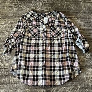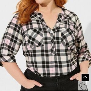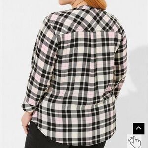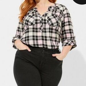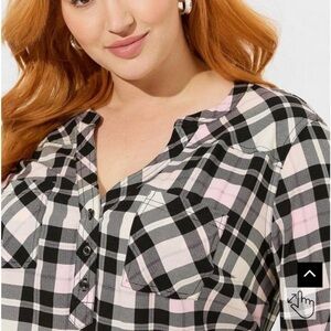 NWT Torrid Harper Challis Pullover 3/4 Sleeve Blouse Jamie Plaid Dew Pink