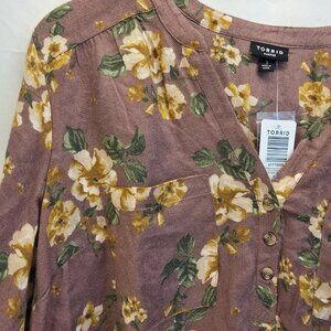 NWT Torrid Harper Softest Flannel Tunic Pullover Light Yellow Floral 1X 14-16