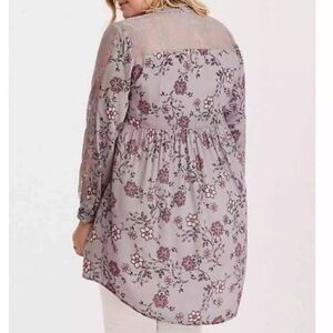 NWT Torrid Hi-Lo Tunic Top Longsleeve Gray Lace Floral Size 1