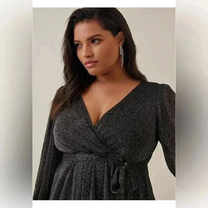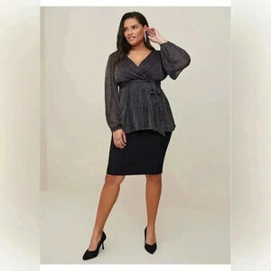 NWT Torrid Knit Glitter Lurex Surplice Peplum Top V Neck 5X Tie Waist Sparkle