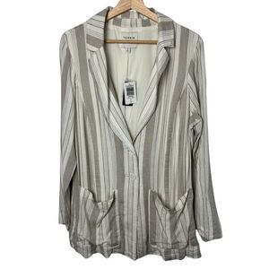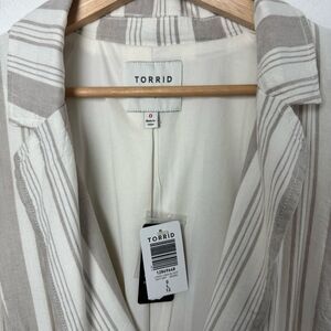 NWT Torrid Linen Striped Blazer White + Beige Coastal Light Size 0 12 Large