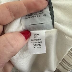 New with tags but has Faint blue discolor on sleeve as show in pictures. It is windex that spilt on it, I believe it should be spot treatable.