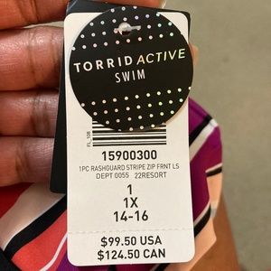 NWT Torrid Long Sleeve Rash Guard One Piece Swim Suit, size 1 (14-16)