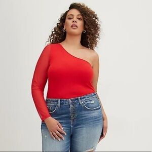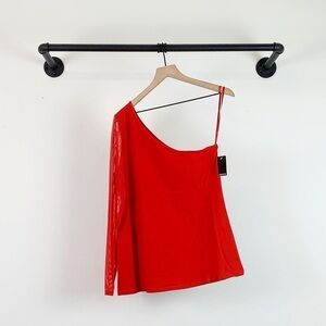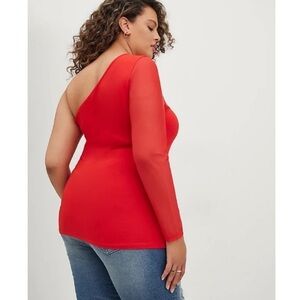 NWT Torrid Mesh One Shoulder Foxy Long Sleeve Red Top