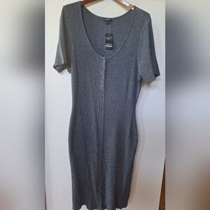 Nwt Torrid Midi Rib Knit Dress. Rounded neckline. Full front snap closure. Short sleeves. Charcoal gray. Lightweight, soft and stretchy. Womens size 3. Pit to pit flat lay 21.5" length from collar to hem 47" measurements are approximate
