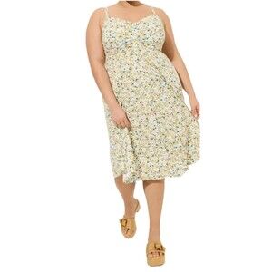 NWT Torrid Midi Super Soft Button-Front Dress Size L/12 Sunshine Ditsy Floral