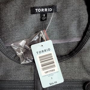 NWT Torrid Military Style Jacket Blazer Size 2=2X Gray Stretch Ponte Knit