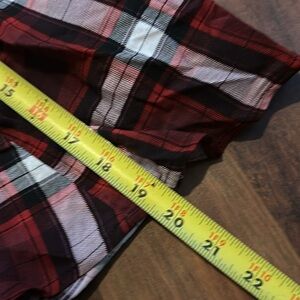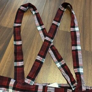 This high waist fit plaid challis woven fabric skirt features fixed straps, a stretchy waistband, button up front, and pockets. Adorable skirt and is NWT. No material tag but is 100% rayon. Great for fall and the upcoming holiday season. Comes from pet friendly, smoke free home.