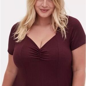 NWT Torrid Mini Slub Rib Fluted Dress Winetasting 1X